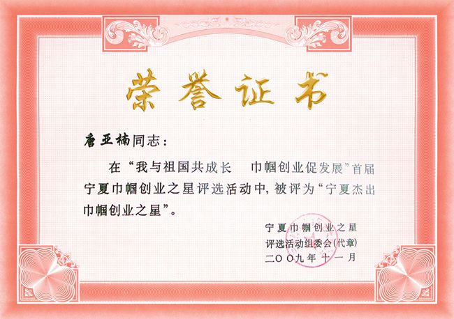 唐亞楠被評(píng)為寧夏杰出巾幗創(chuàng)業(yè)之星
