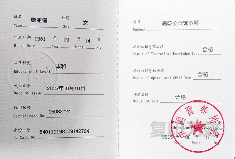 總經(jīng)理唐亞楠獲得高級公眾營養(yǎng)師資格